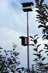 ![]() Hecken und ausreichend begrünte Fahrgassen als Lebensraum für Nützlinge, sowie Sitzstangen und Brutkästen für Turmfalken und Steinhaufen als Unterschlupf für Mauswiesel, sind Kriterien, die man im Kontrolliert-Integrierten Anbau erfüllen muss. Desweiteren wird eine jährliche Laboruntersuchung von Blatt- und Apfelproben auf Rückstände durchgeführt. |